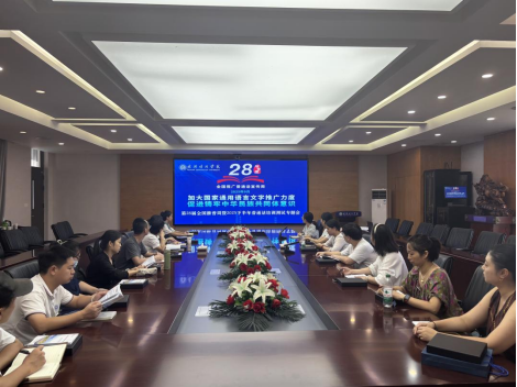 经国务院批准,自1998年起,每年9月第三周为全国推广普通话宣传周(以下简称推普周),其中2025年9月15日至21日举办第28届推普周。为保证本学期普通话测试的顺利开展,加强我校普通话测试员的相互交流,切实做好推普周的活动内容,深入宣传国家语言文字政策,武汉晴川学院普通话培训测试工作站于9月17日在综1-414会议室召开了第28届全国推普周暨2025下半年普通话培训测试专题会议,参会人员为我校全体普通话测试员及考务人员。